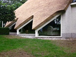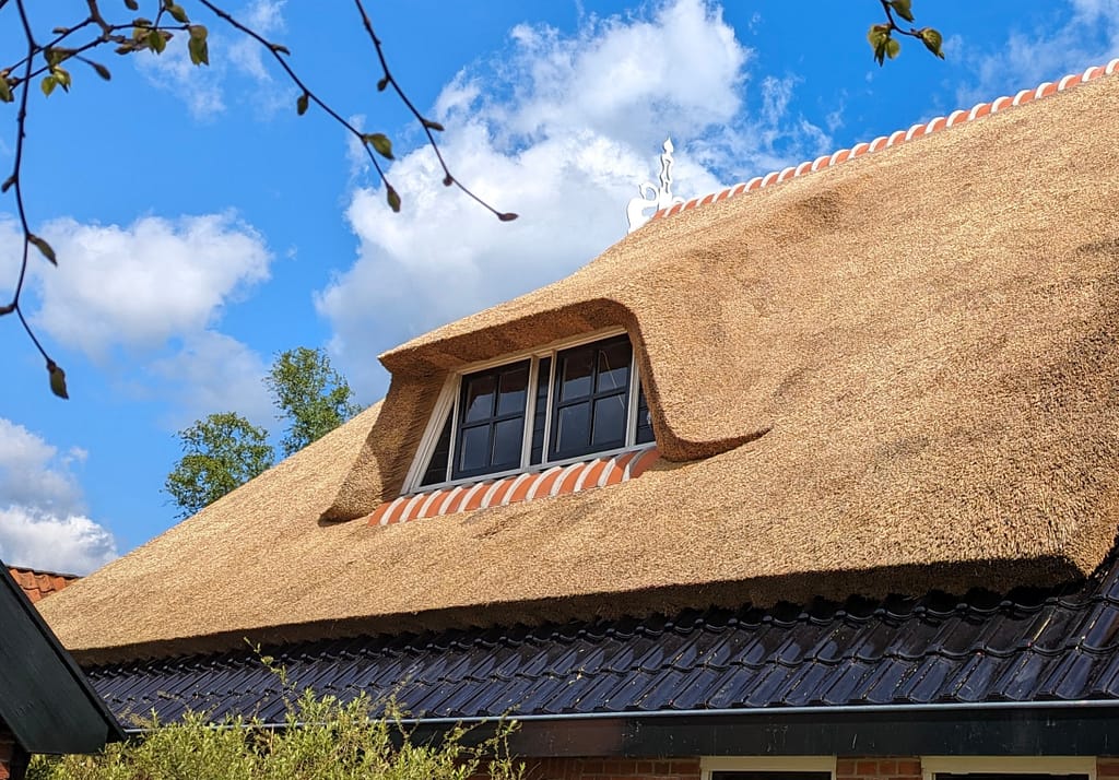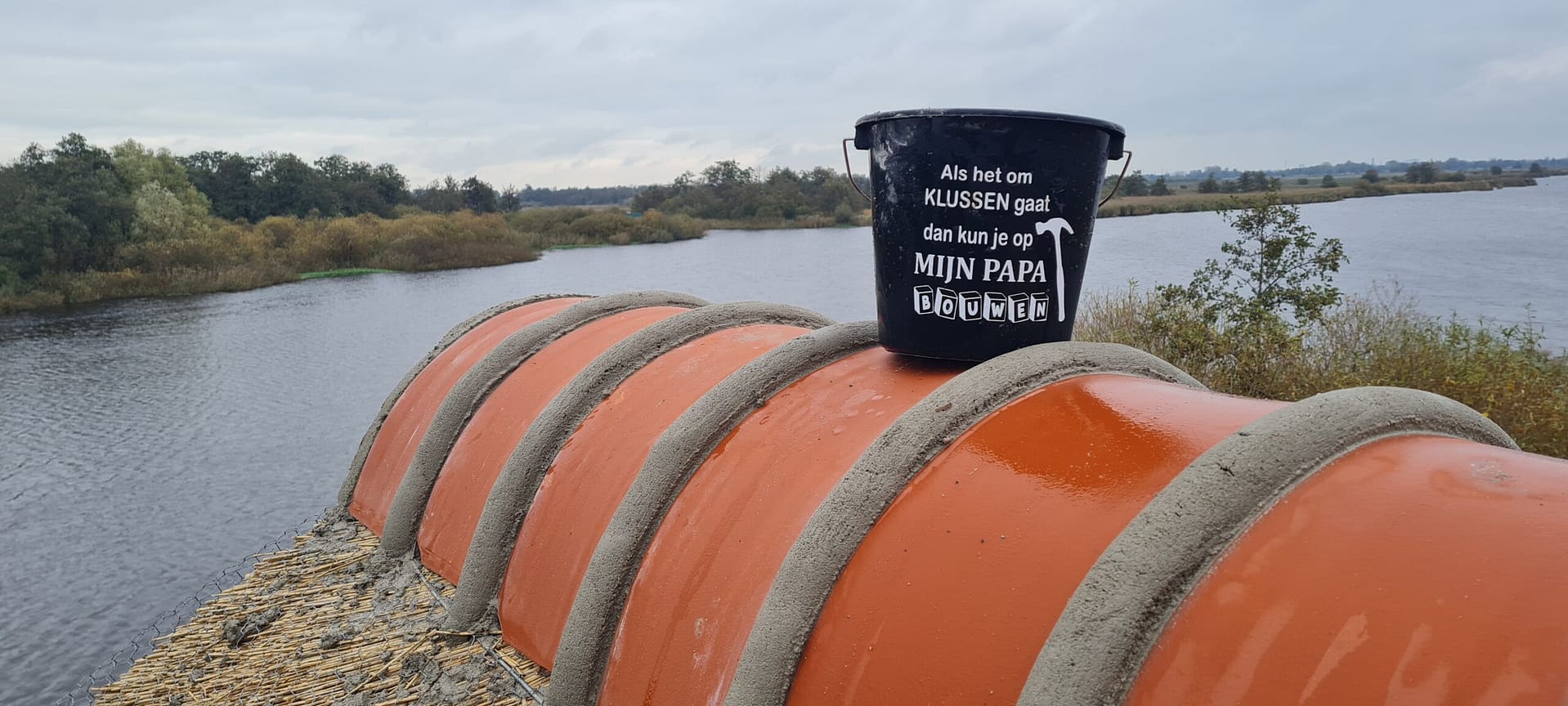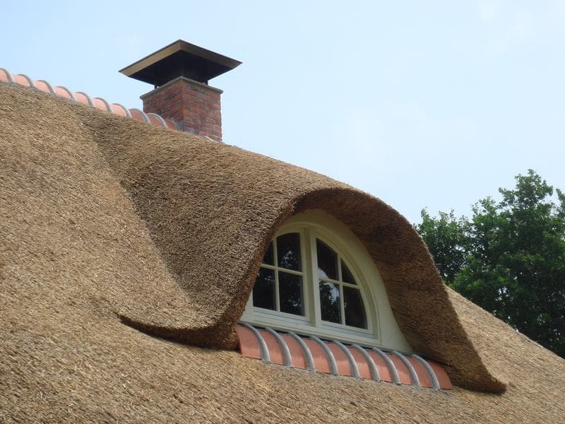 Een speciaal hiervoor gemaakte halfronde pan, die voor een mooie afwerking van het dak zorgt.