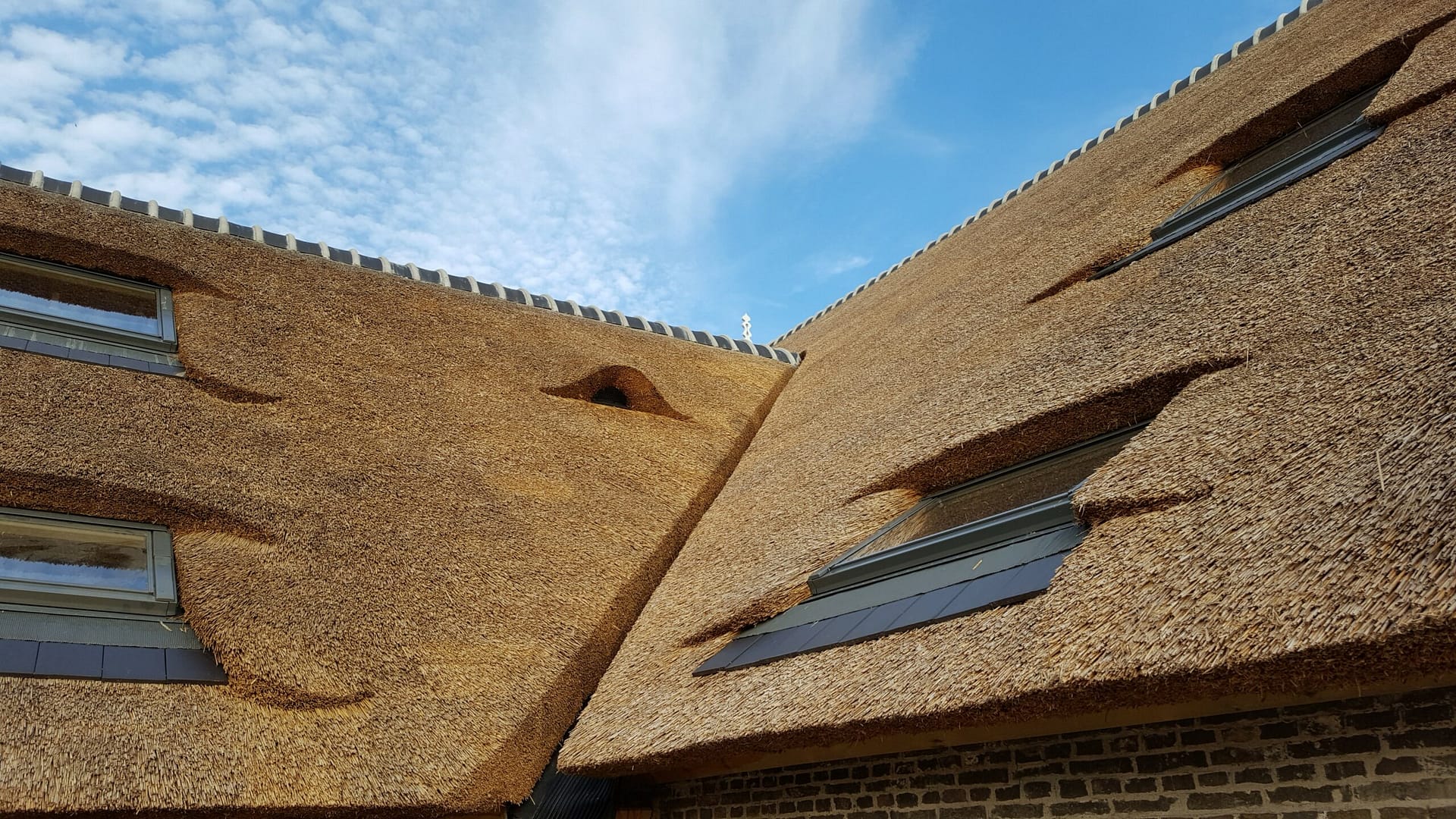 De nokafwerking wordt meestal gerealiseerd met rode of zwarte vorstpannen.