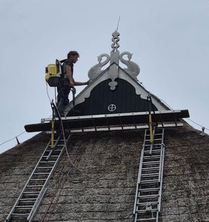 Als rietdekkersbedrijf werken wij dagelijks op daken en weten wij precies hoe wij deze onderdelen veilig en zonder schade kunnen reinigen. Met professionele materialen en een zorgvuldige werkwijze zorgen wij ervoor dat alles weer grondig schoon en verzorgd is.
