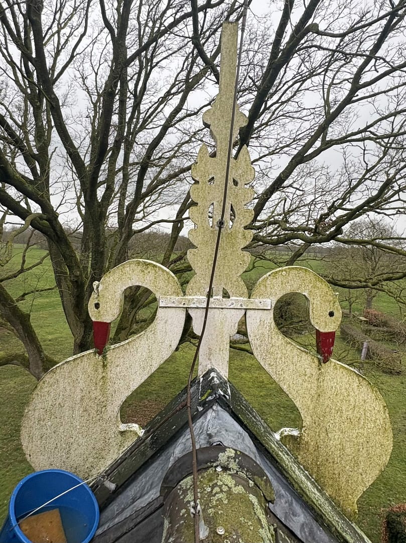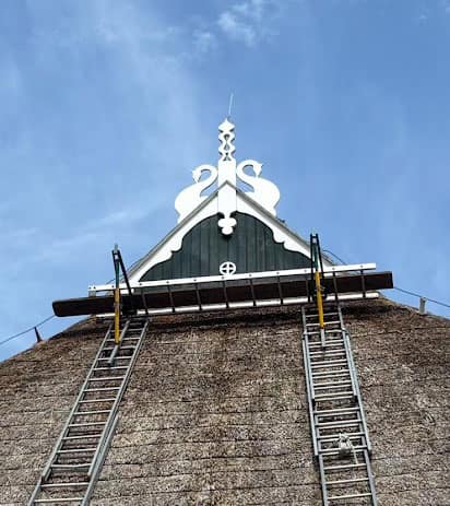 Naast het vakkundig dekken van rieten daken zijn wij gespecialiseerd in het reinigen van moeilijk bereikbare onderdelen op en rondom het dak. Denk hierbij aan het reinigen van uilenborden, rietvorsten, dakkapellen en dakpannen.